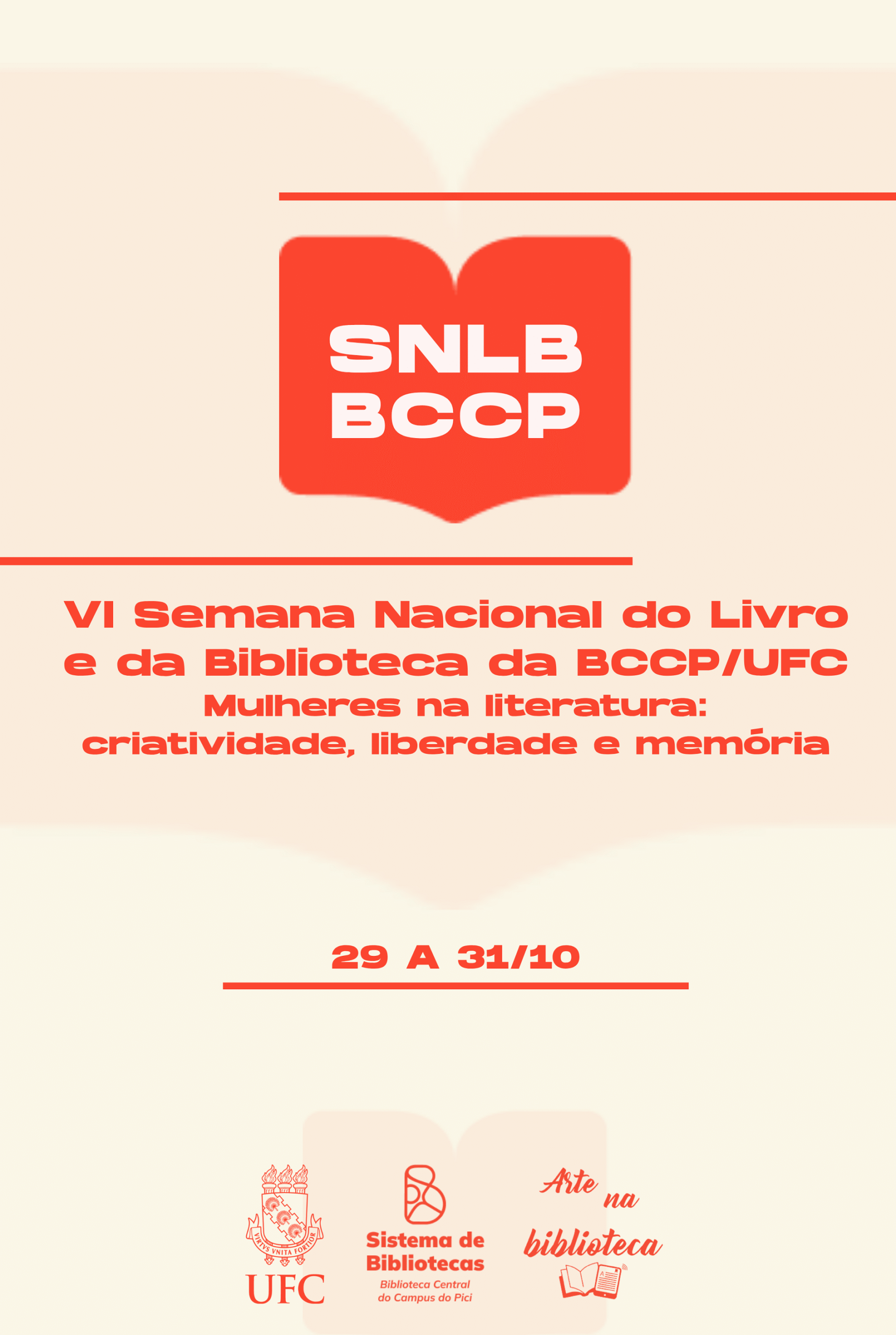 A Biblioteca Central do Campus do Pici Prof. Francisco José de Abreu Matos (BCCP) realiza a VI Semana Nacional do Livro e da Biblioteca (SNLB/BCCP) com o tema “Mulheres na literatura: criatividade, liberdade e memória” homenageando, de forma representativa, a escritora cearense Socorro Acioli. O evento acontecerá de 29 a 31 de outubro de 2025. […]